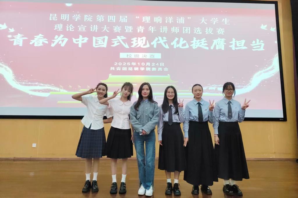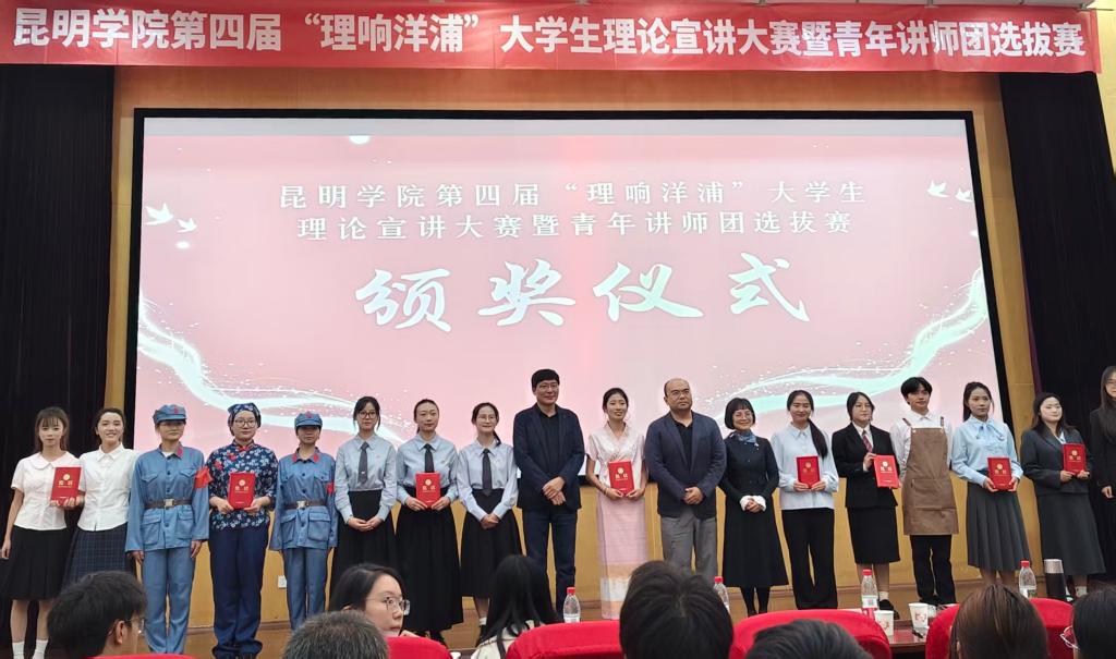 2025年10月24日,昆明学院第四届“理响洋浦”大学生理论宣讲大赛暨青年讲师团选拔赛校级决赛在惟行楼1501报告厅举行。我院选派的两组选手在比赛中表现优异,分获二等奖与三等奖,展现出外院学子扎实的理论素养与出色的综合能力。