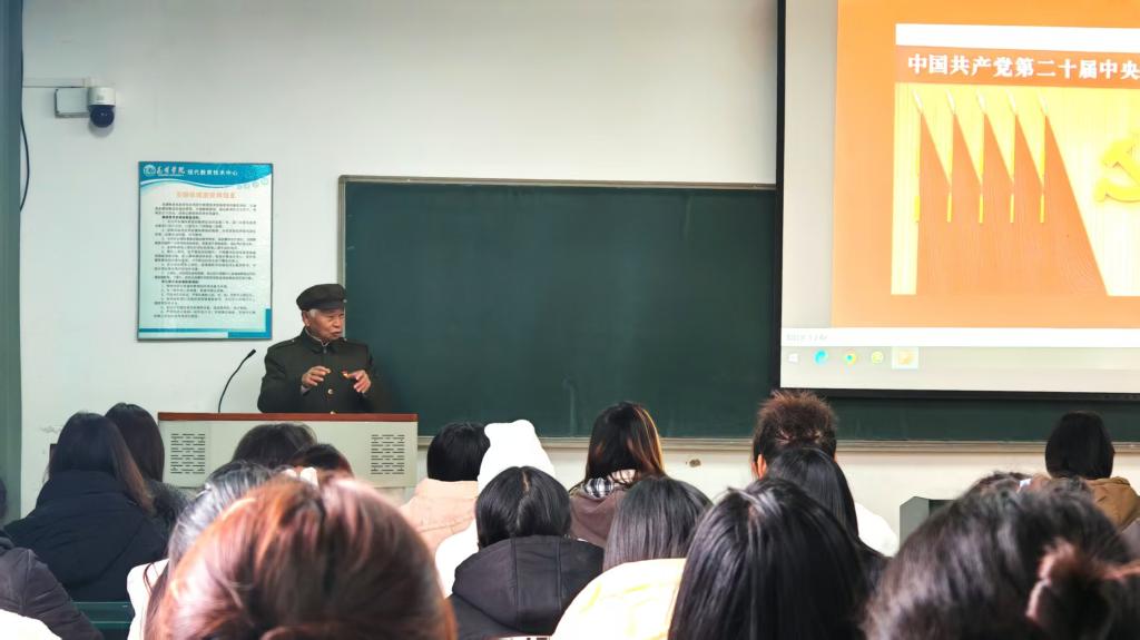 81岁高龄的黄启后教授深耕教育一线六十余载,以独创的“情境沉浸式”教学法系统解读全会精神。作为全国关工委“金课”巡讲导师,他围绕全会概况、习近平总书记对《建议》的说明及“十五五”规划核心部署,结合鲜活案例将中国式现代化、文化强国建设等宏大议题与青年成长使命紧密结合,深入阐释全会精神的政治内涵与实践要求。同学们聚精会神聆听、认真记录要点,会场秩序井然,学习氛围浓厚。