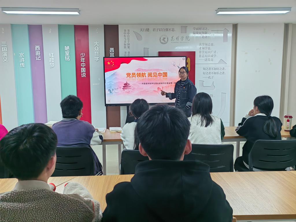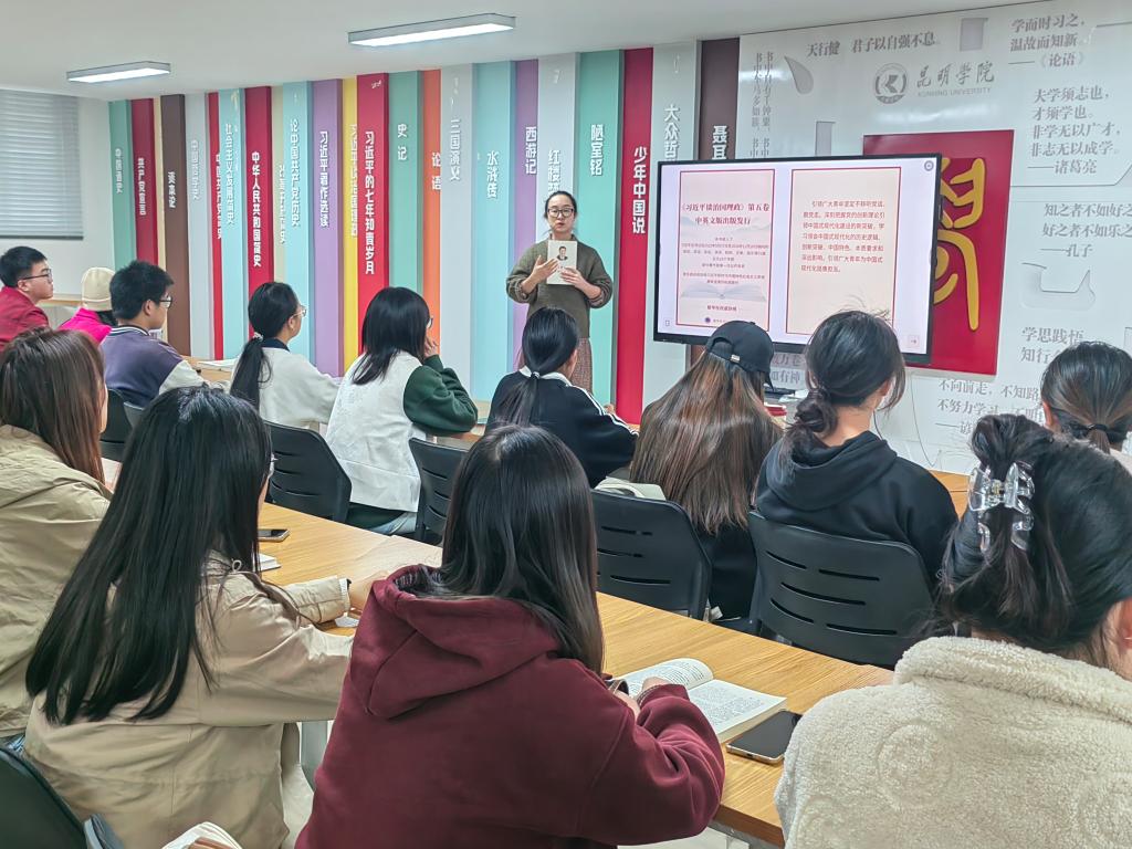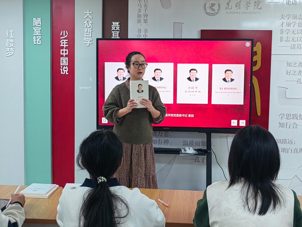 2025年10月24日,洋浦校区“一站式”学生社区党建悦读空间内书香氤氲、气氛热烈,“党员领航,阅见中国—外国语学院学生党支部读书分享会”第二期在此拉开帷幕。外国语学院党委副书记翟喆老师登台致辞,并现场领读《习近平谈治国理政》第五卷精选章节。翟老师指出,理论强才能方向明,党员同学必须把系统研读党的创新理论作为首要任务,在常学常新中深刻领悟“两个确立”的决定性意义,增强“四个意识”、坚定“四个自信”、做到“两个维护”。要把今天的读书分享当作新的起点,把理论学习成果转化为坚定理想、锤炼党性和指导实践、推动学习的强大力量。