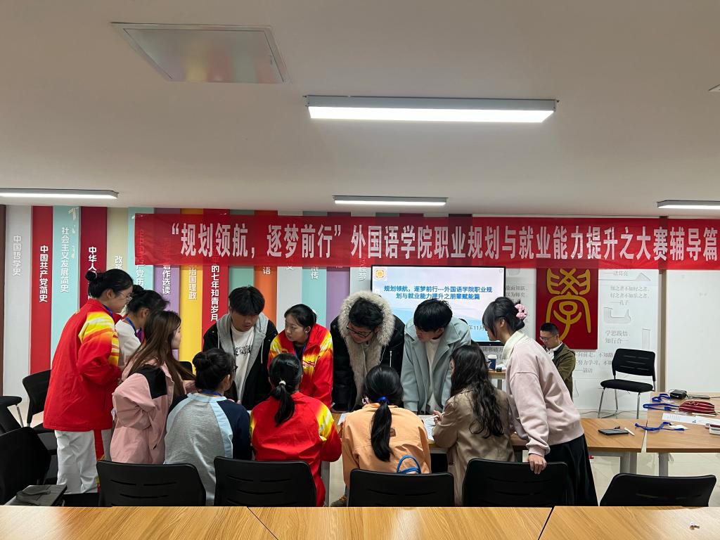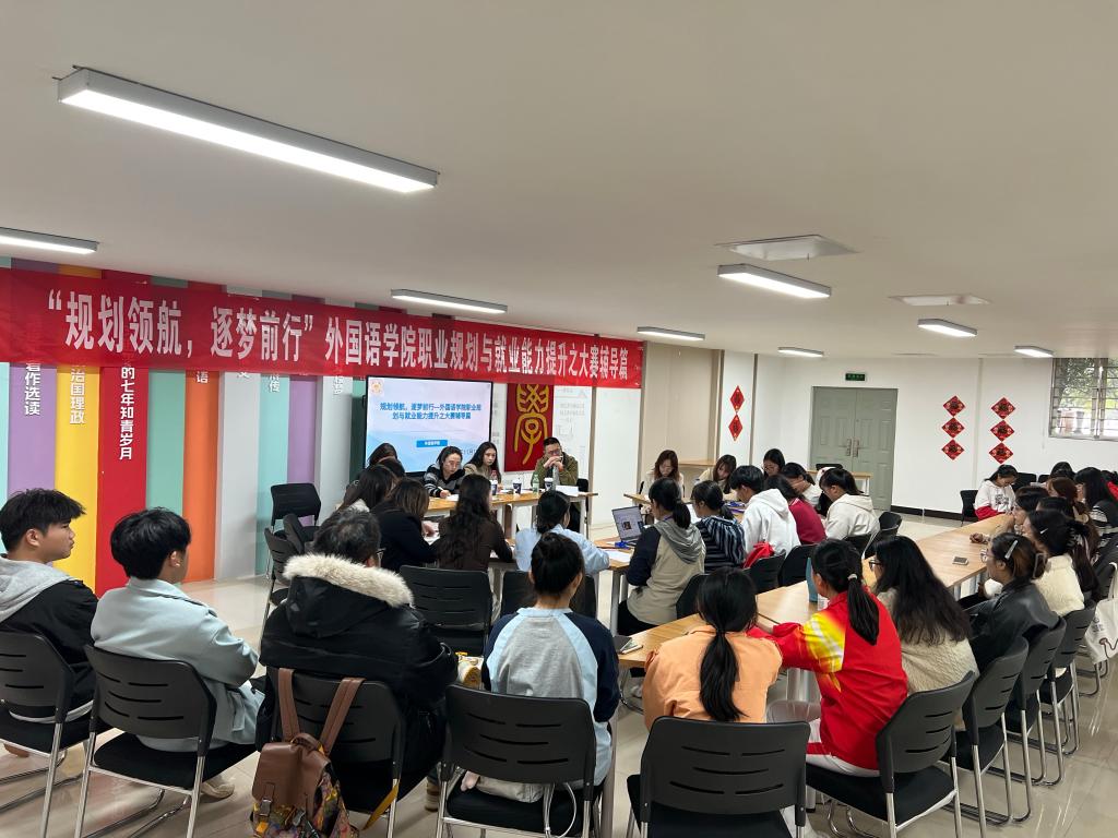 为切实提升学生职业规划与就业竞争力,助力备战第三届全国大学生职业规划大赛,2025年11月13日,外国语学院在“一站式”学生社区党建文化悦读空间成功举办了“规划领航,逐梦前行”外国语学院职业规划与就业能力提升大赛专题辅导活动。本次活动特邀昆明新东方前途出国资深专家针对参赛选手的职业规划作品和实战能力进行辅导。