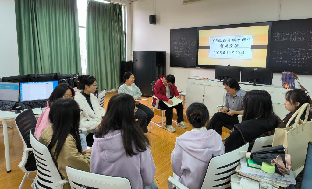 2025年10月22日,外国语学院举行2025级翻译硕士期中督导座谈会。研究生督导、相关教师及全体同学围绕本学期学业进展、课程适应情况与学习反馈展开深入交流,为优化教学安排、提升学习实效凝聚共识。
